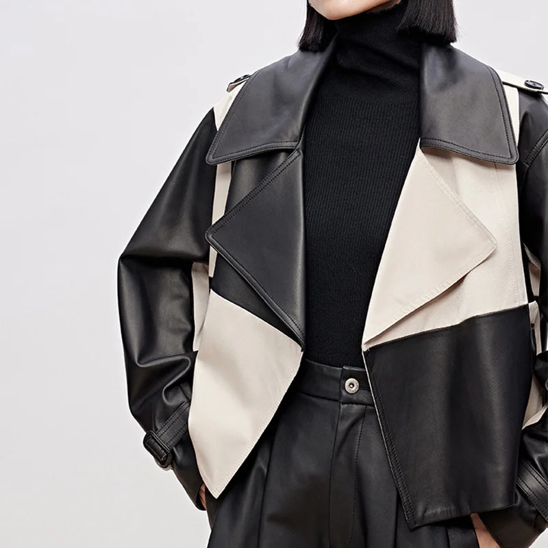 Fashion 2023 New Lady Leather Jackets Checkerboard Genuine Sheepskin Short Coat Elegant Streetwear AEL4938