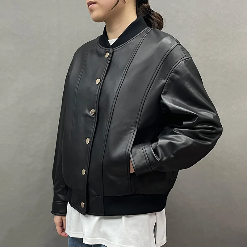 2023 Autumn Winter Genuine Sheepskin Leather Jackets New Design Golden Color High Collar Leather Coat GT5160