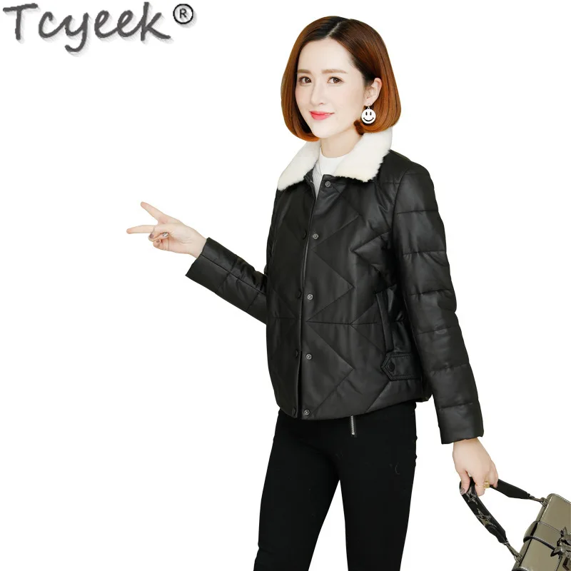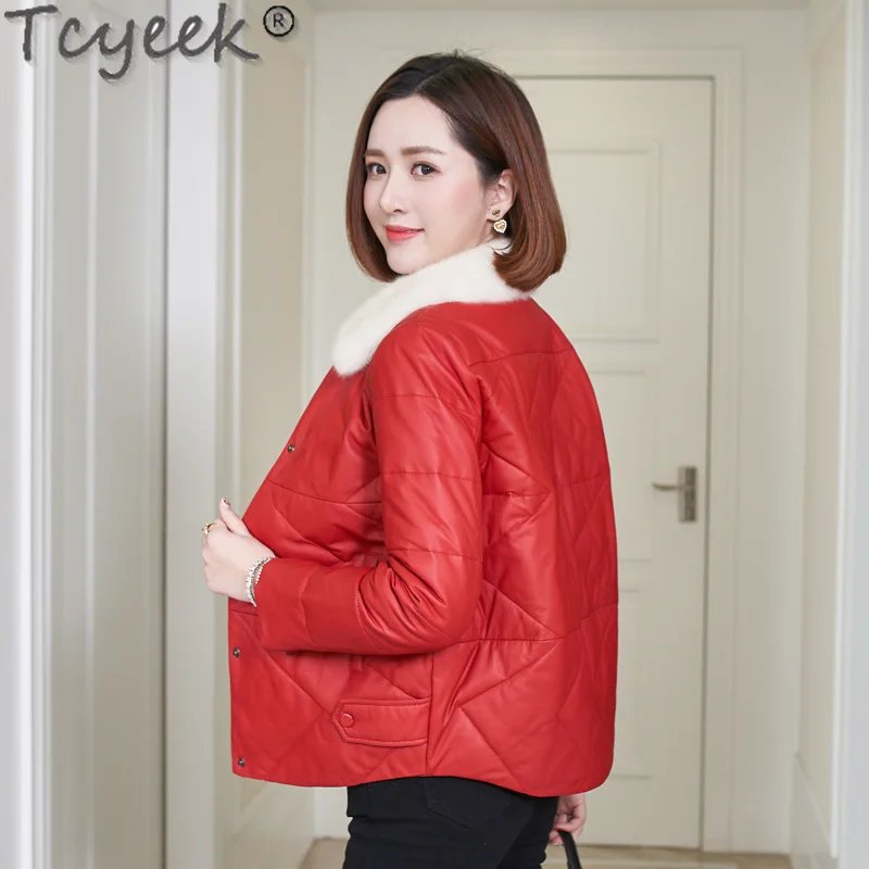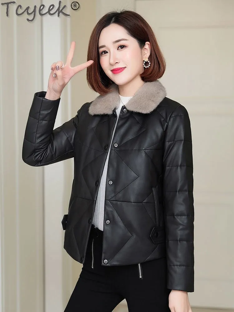 Tcyeek Genuine Leather Sheepskin Jacket Winter Jackets for Women Warm Mink Fur Collar Casual Down Coat Womens Clothing 2024