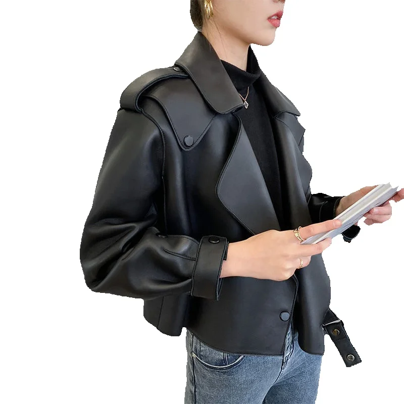 New Sheepskin Women's Genuine Leather Women's Versatile Short Korean Loose Motorcycle Jacket Blue Fashion Coat