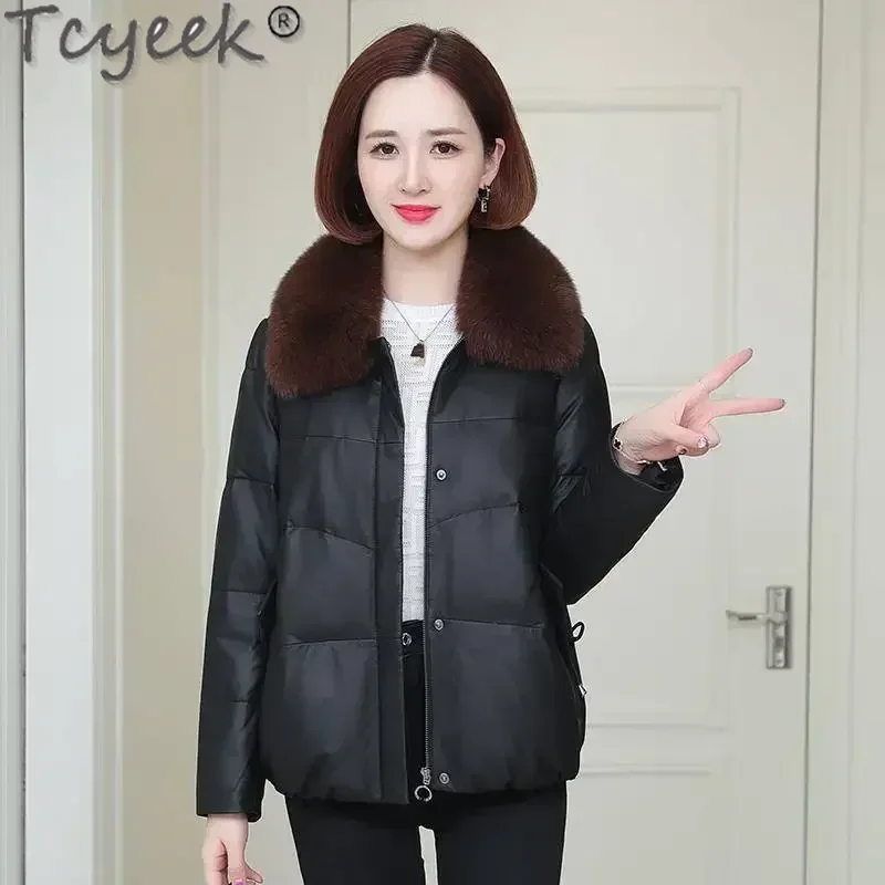 Tcyeek Sheepskin Genuine Leather Down Jacket Women Real Fox Fur Collar Coat Womens Clothing Winter Warm Down Coats Chaqueta