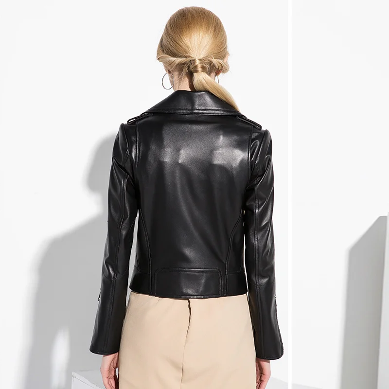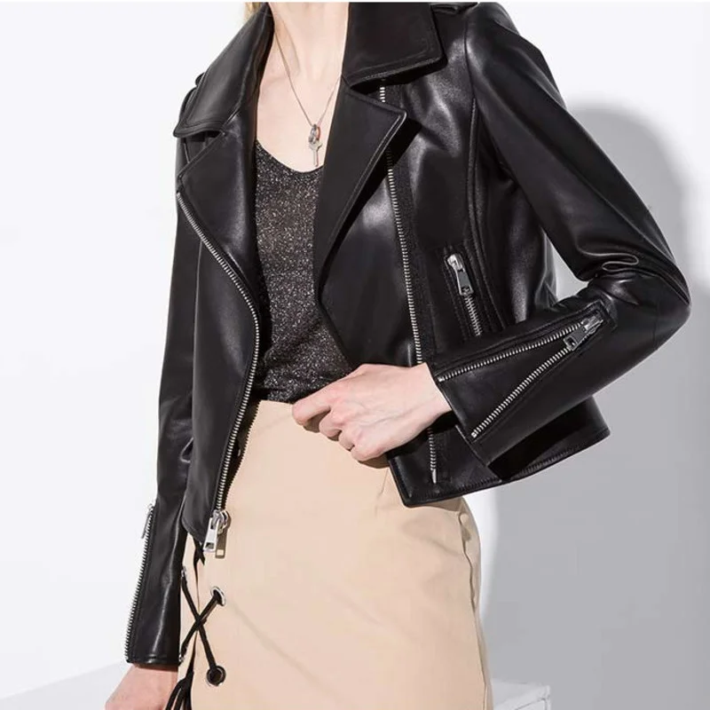 2023 Genuine Leather Jacket Women Real Leather Jacket Sheepskin Black Soft Slim Fit Punk Female Coat Spring Autumn 17067