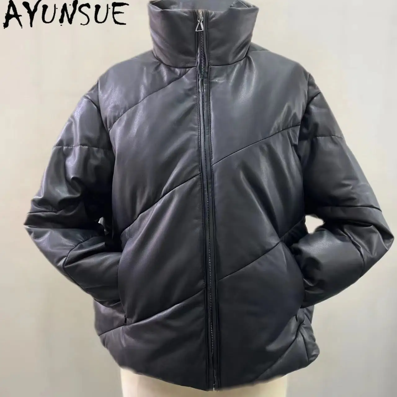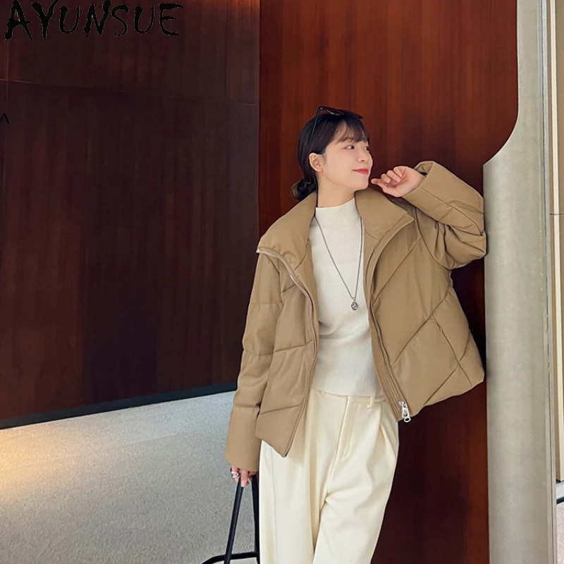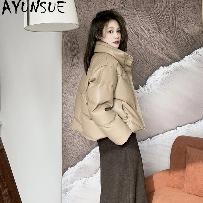 AYUNSUE Real Leather Jacket Women 2023 Korean Fashion Short Down Coat Standing Collar Ladies Winter Coats and Jackets Chaquetas